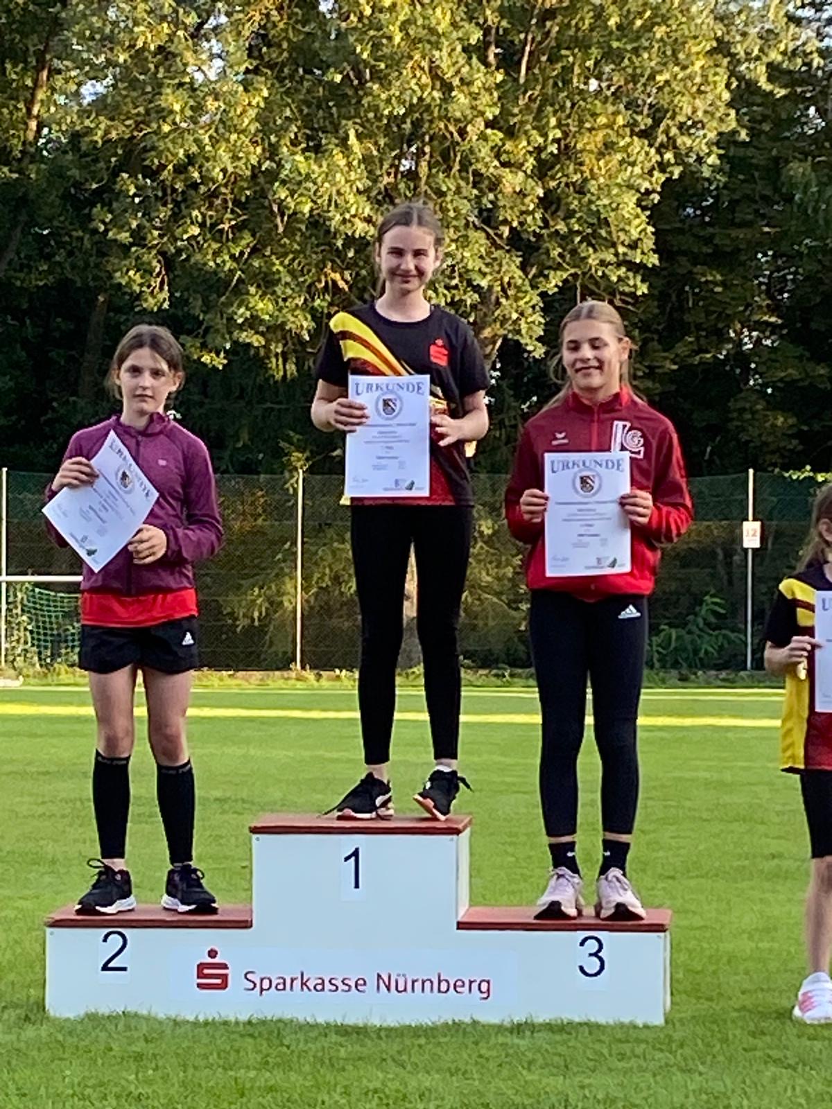 In der Jugend W13 gab es einen Dreifachtriumph der LG Lauf, es siegt Sina Polland vor Allamatu Kamara und Finja Binke. In der Altersklasse W12 konnte Fabienne einen tollen 2. Platz erzielen und lag mit 1052 Mehrkampfzählern um gerade einmal 6 Zähler hinter der siegenden Johanna Ruder aus Hersbruck. Vierte in dieser Altersklasse wurde Ella Voigt. Bei den Mädchen des Jahrgangs 2014 konnte Hanna Dehne den ersten und Emma Seifried den 4. Platz belegen. Bei den Mädchen W9 gab es einen Dreifachtriumph der Athletinnen aus Lauf zu feiern; Finja Sonntag siegte vor Liza Tchouate und Claire Ackermann.
